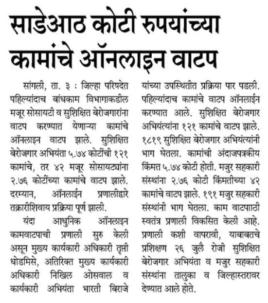 This system is designed and developed for the Zilla Parishad's in Maharashtra as per scope given by them. In this system ZP's are able to distribute their work amongs contractors.